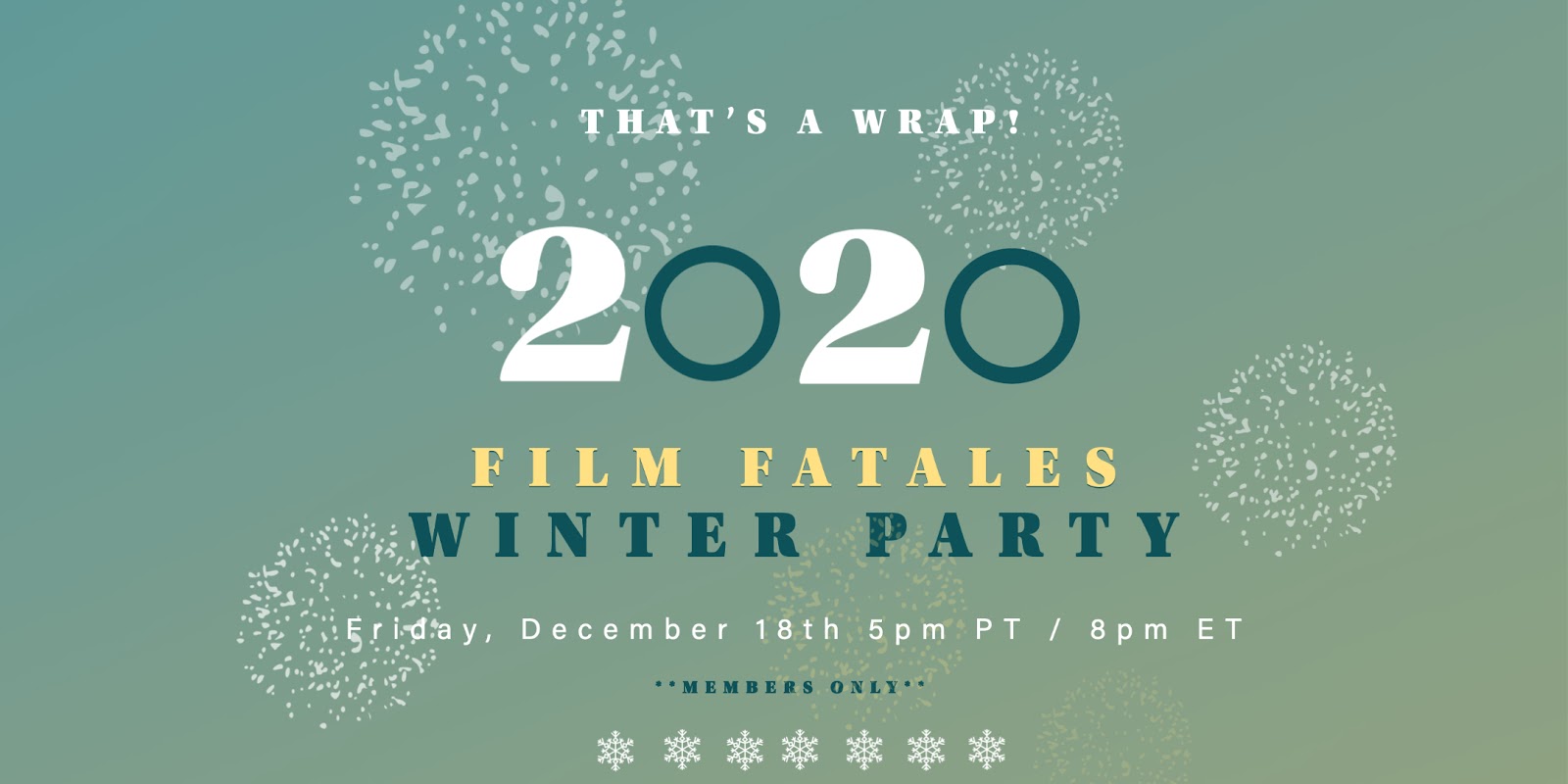 Film Fatales members around the world were invited to a social gathering to celebrate the end of the year. Raise a glass, reconnect with like-minded filmmakers, and look forward to the days ahead. We came together in the main room for a guided conversation and getting to know you exercise before dividing up into a series of smaller breakout groups for more intimate conversations and deeper connections.